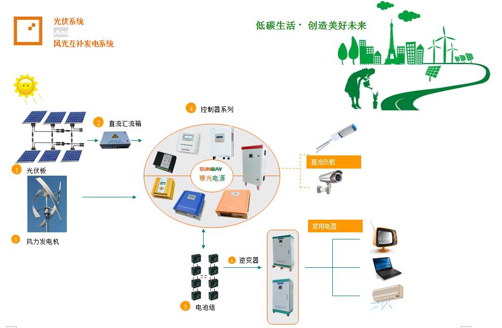 風(fēng)光互補(bǔ)戶用離網(wǎng)系統(tǒng)是采用小型風(fēng)力發(fā)電機(jī)和光伏組件提供電能的一種新能源供電系統(tǒng)。能解決無電地區(qū)基本生活用電,可有效降低化石能源帶來的碳排放。特別適合于不方便市電供電而又需要電能的地方,如營房哨所、小型海島、村落、野外工作站等區(qū)域。